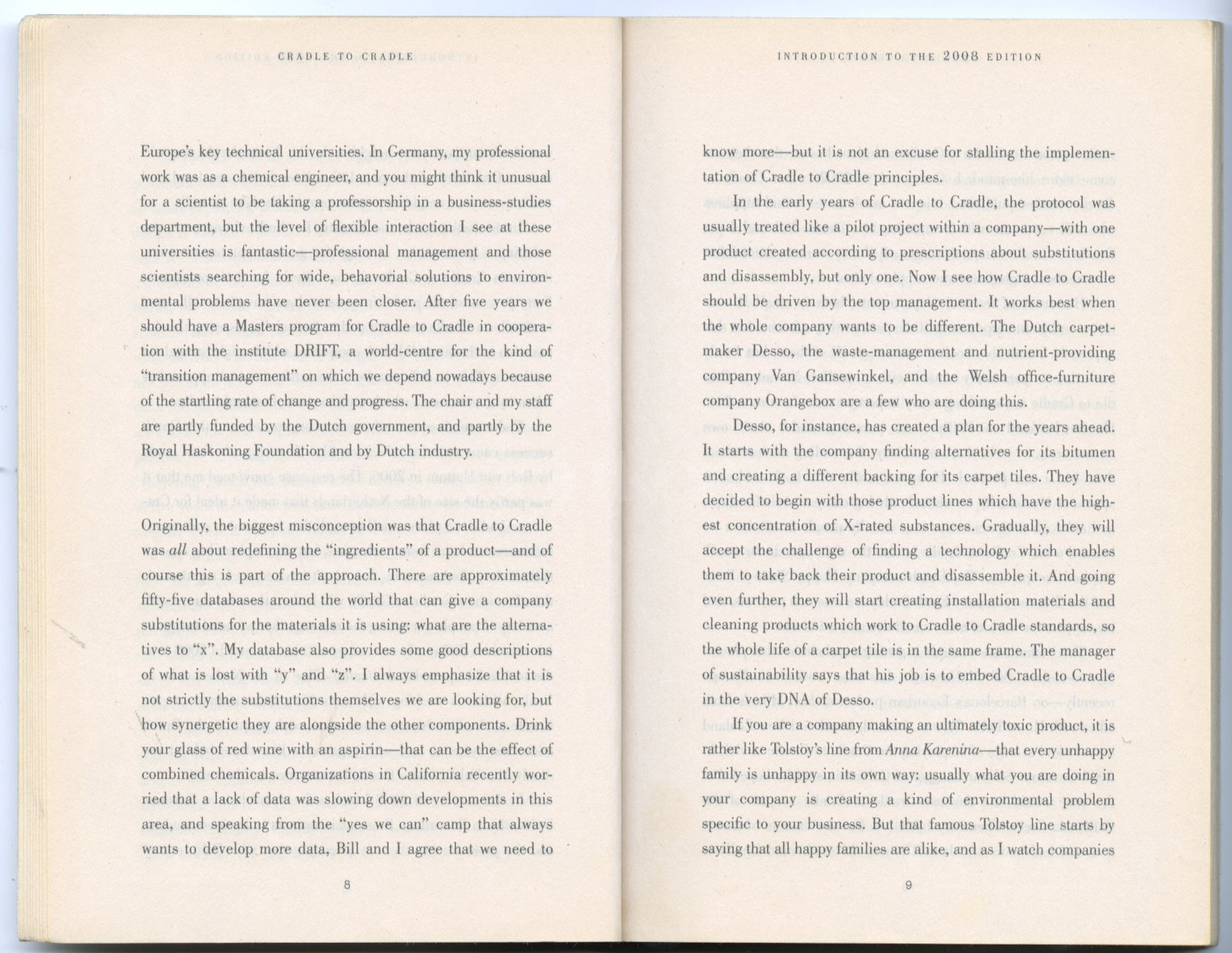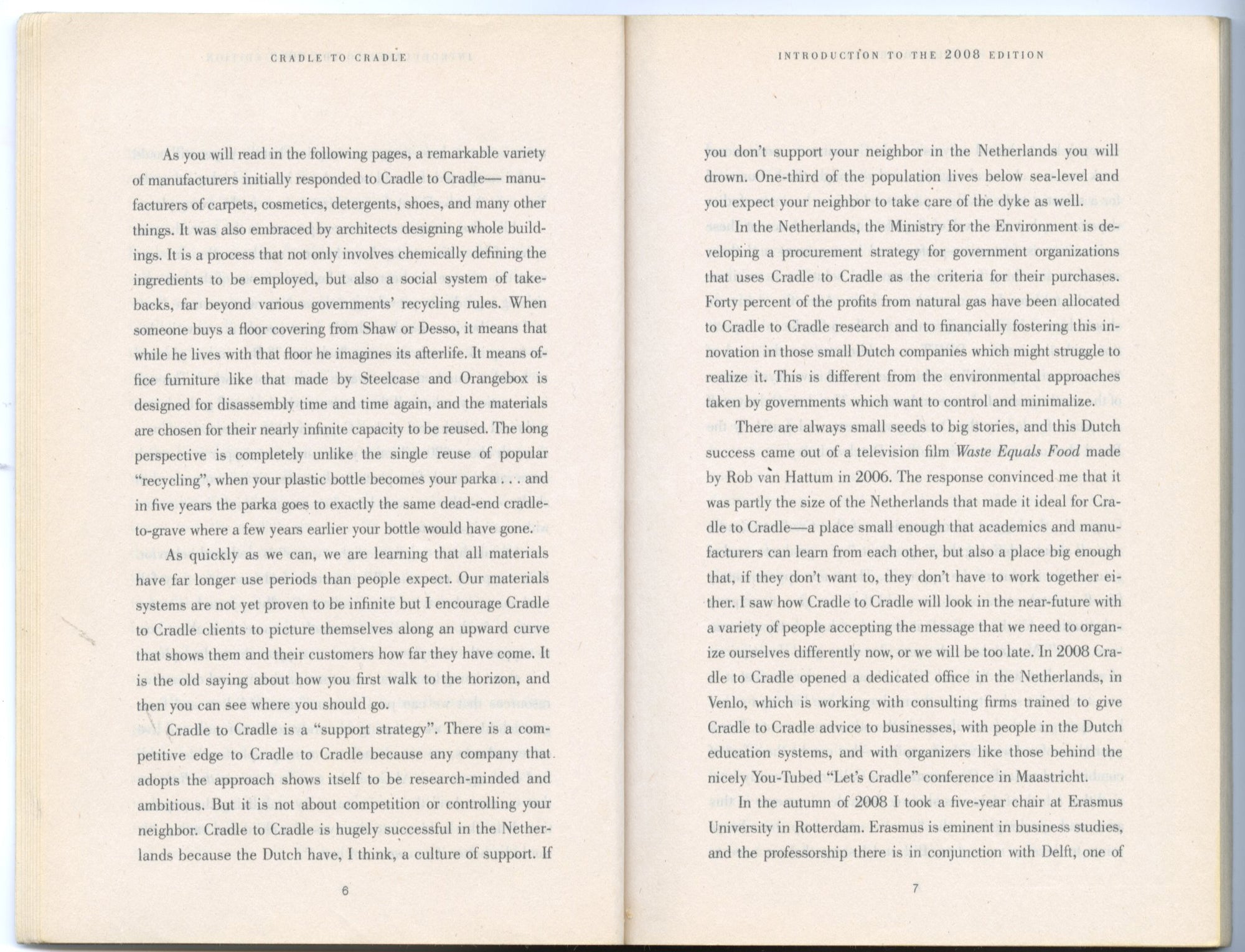 "Reduce, reuse, recycle”. This is the standard “cradle to grave” manufacturing model dating back to the Industrial Revolution that we still follow today. In this thought-provoking read, the authors propose that instead of minimising waste, we should be striving to create value. This is the essence of Cradle to Cradle: waste need not to exist at all. By providing a framework of redesign of everything from carpets to corporate campuses, McDonough and Braungart make a revolutionary yet viable case for change and for remaking the way we make things.