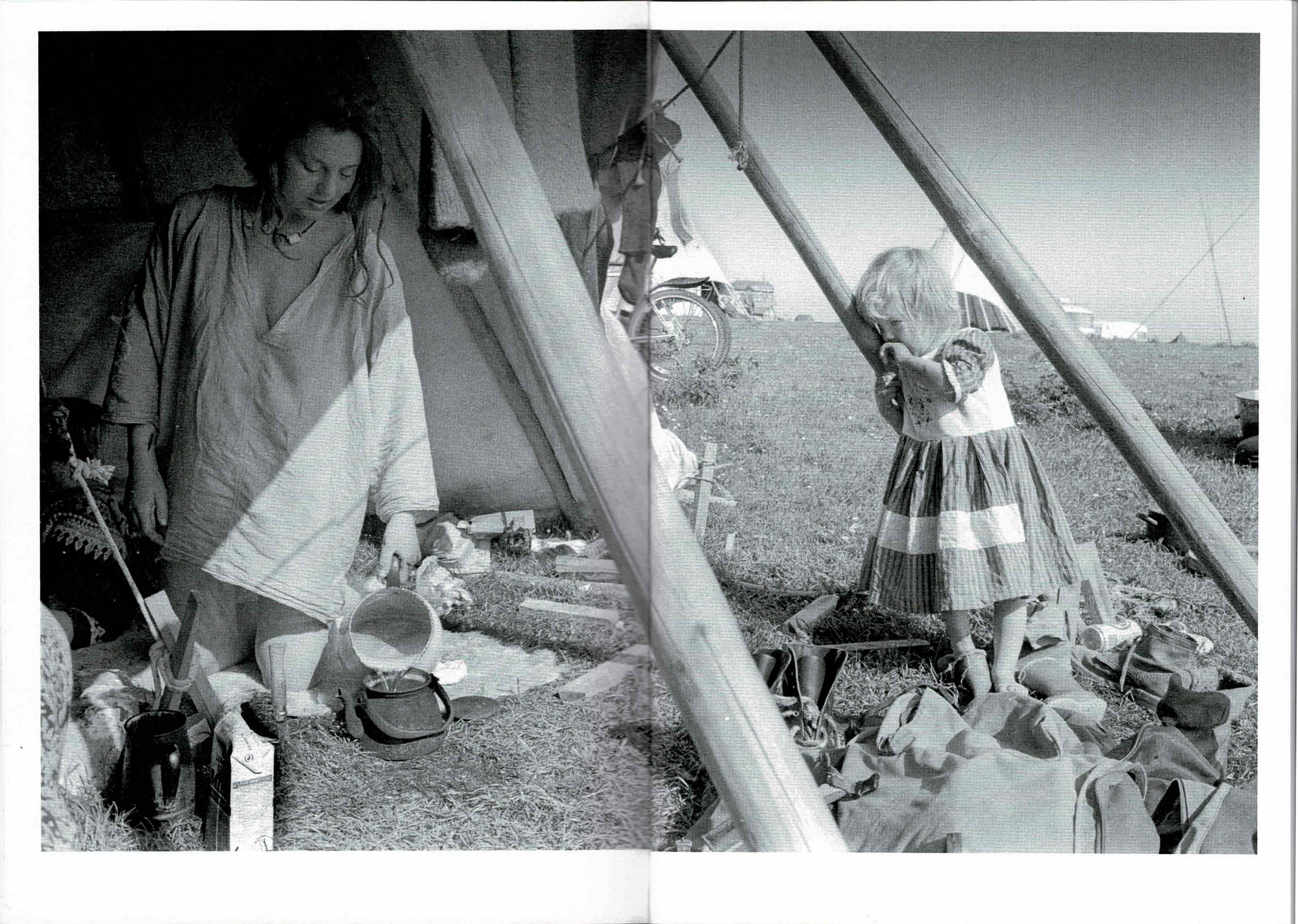 Pagans, Hippies, Travellers: England 1992 by Wayne Tippetts is a 36-page zine published by Café Royal Books. It documents the summer of 1992, when Tippetts visited New Age traveller communities in Sussex, the Forest Fayre in Gloucestershire, and the Glastonbury Festival. His photographs capture the spirit of the 'New Age' movement—a blend of nomadic lifestyles, ecological awareness, and alternative cultural practices. This period also marked a turning point, as public opinion shifted and legislation like the 1994 Criminal Justice Act began to impact these communities.